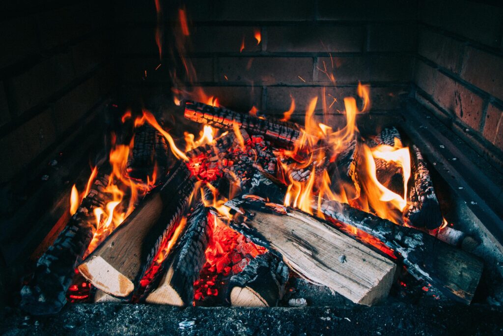 Het vuur is helemaal uit, ik vind geen gloeiende stukjes hout meer.
