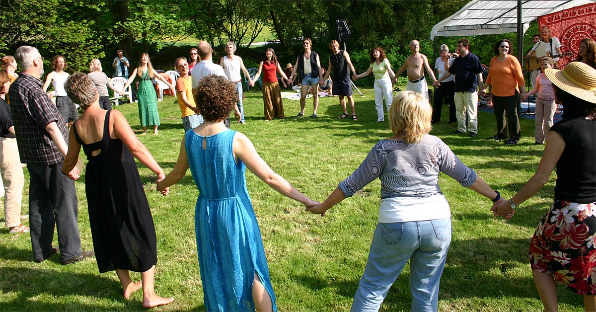 • In het programma vinden we ook: Morning singing – Gachchhamis and Silent Sitting – Flowing Together Meeting – Short Movies from Poona and sharing the Experiences – Sufi Heart Dance – Impro Theatre & Disco en veel live muziek van de Parimal band.